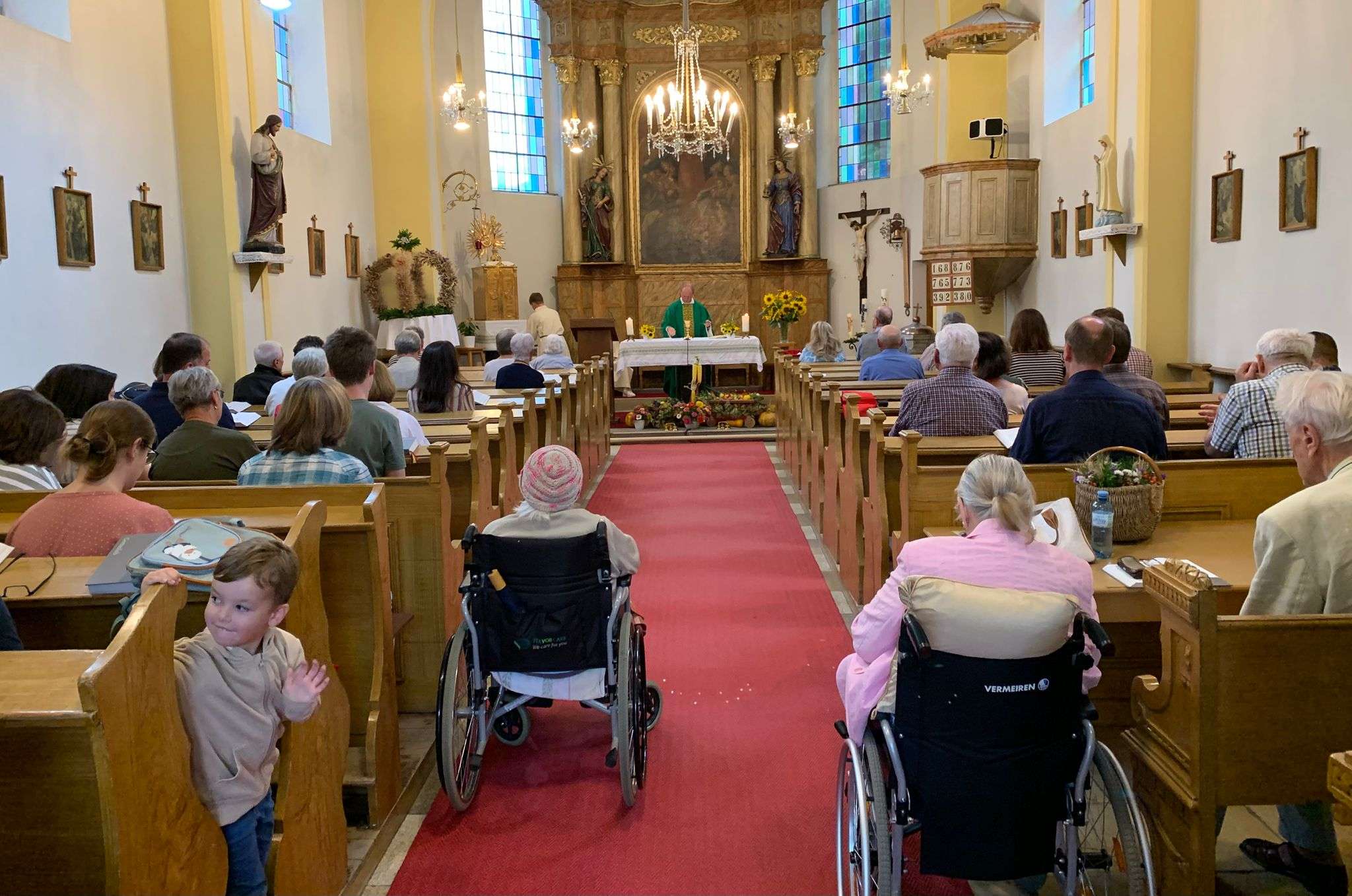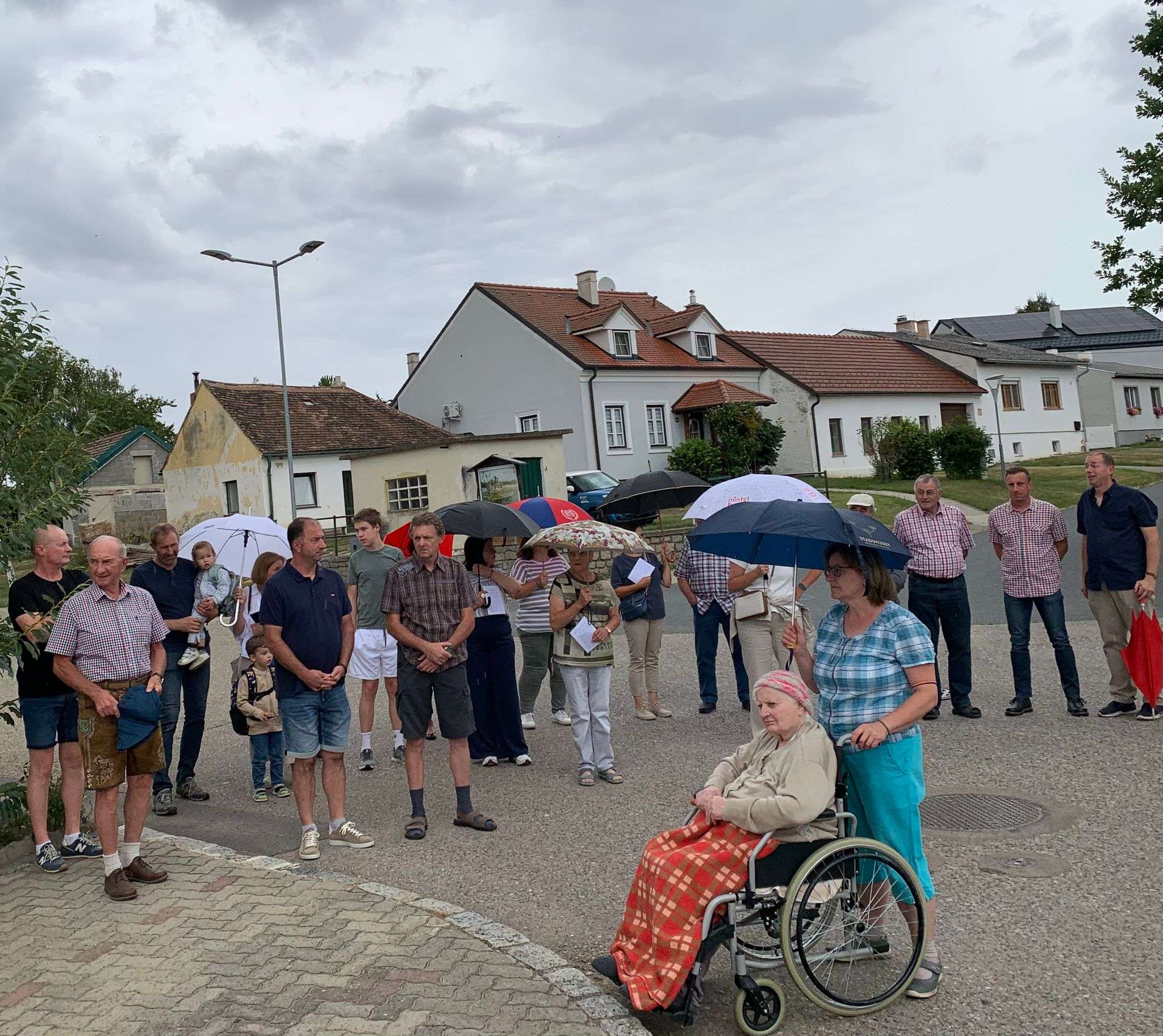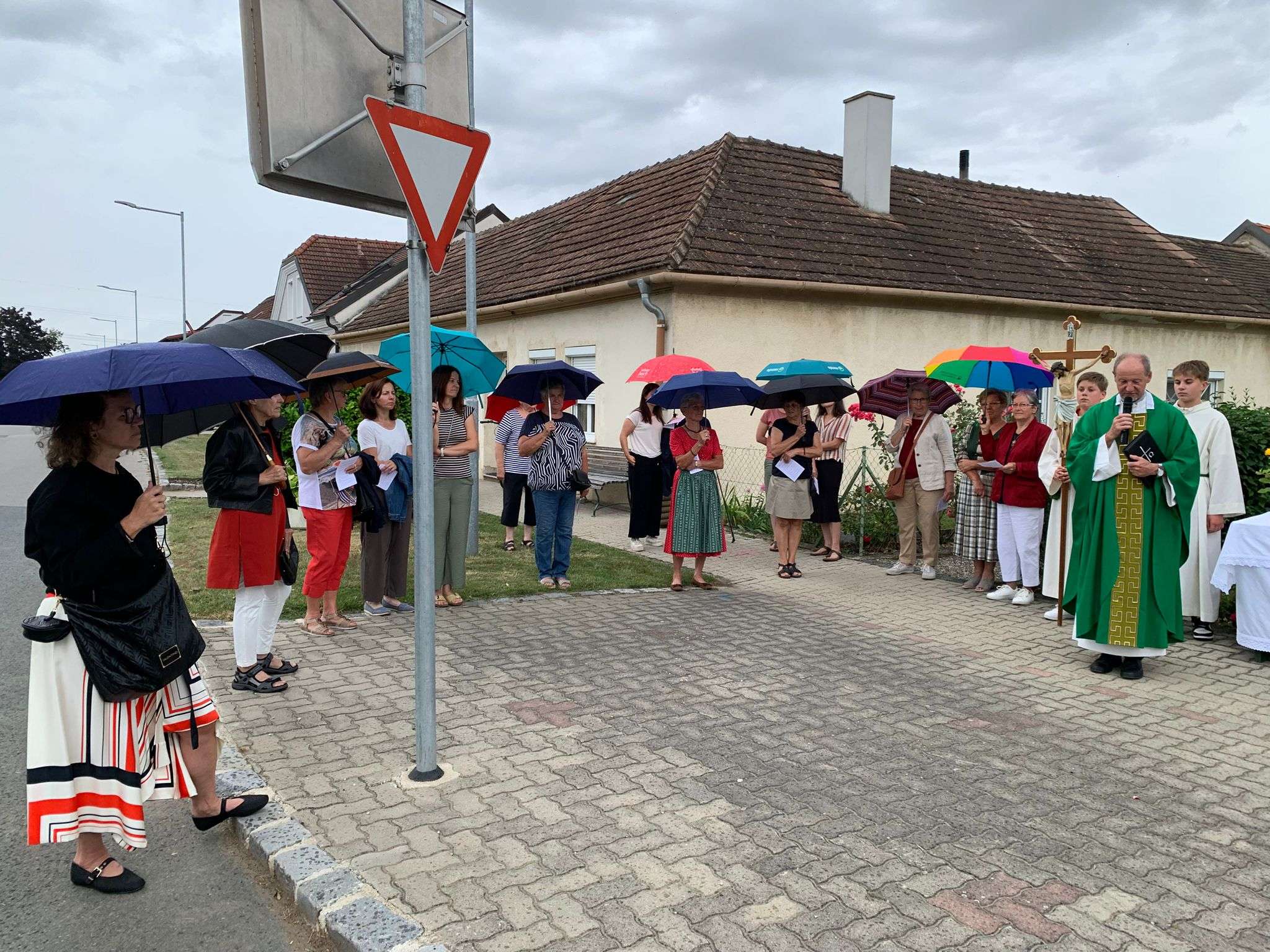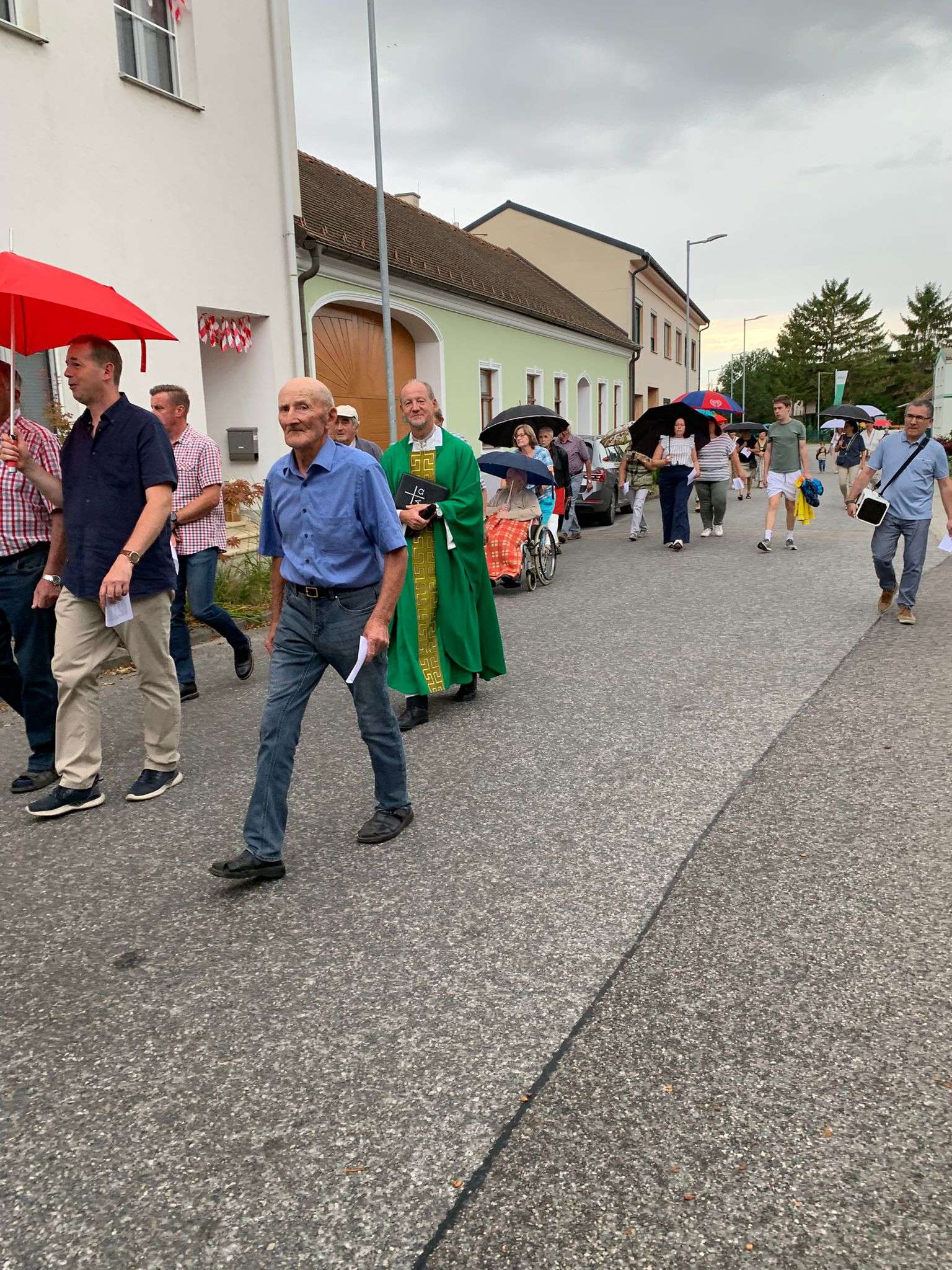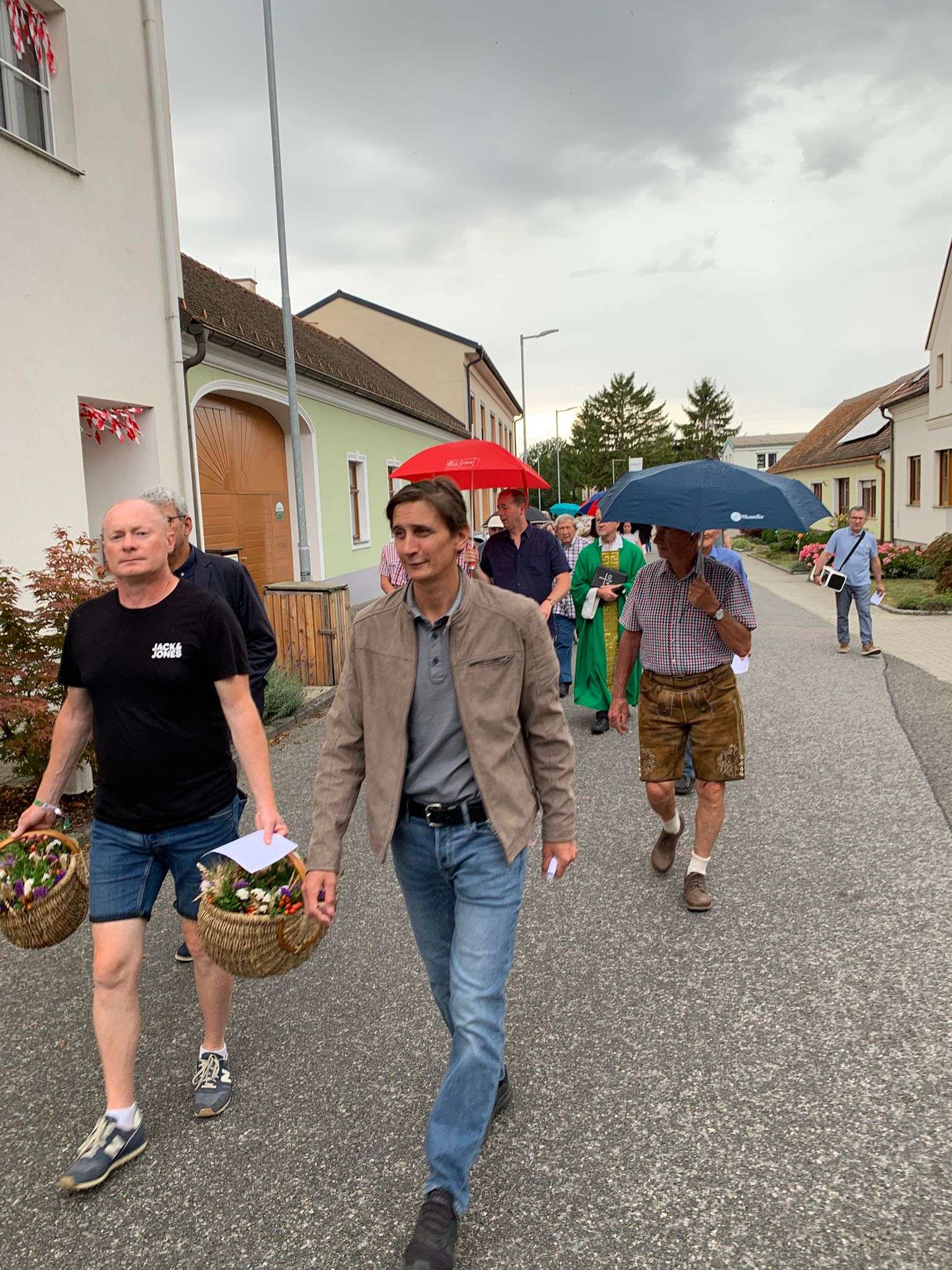 Wie jedes Jahr versammelten sich viele aus der Pfarrgemeinde beim Dostalkreuz, wo die Erntekrone und die Erntegaben gesegnet wurden. Anschließend zogen wir in einer feierlichen Prozession zur Kirche. Dort zelebrierte Pfarrer Christoph mit uns die Erntedankmesse.