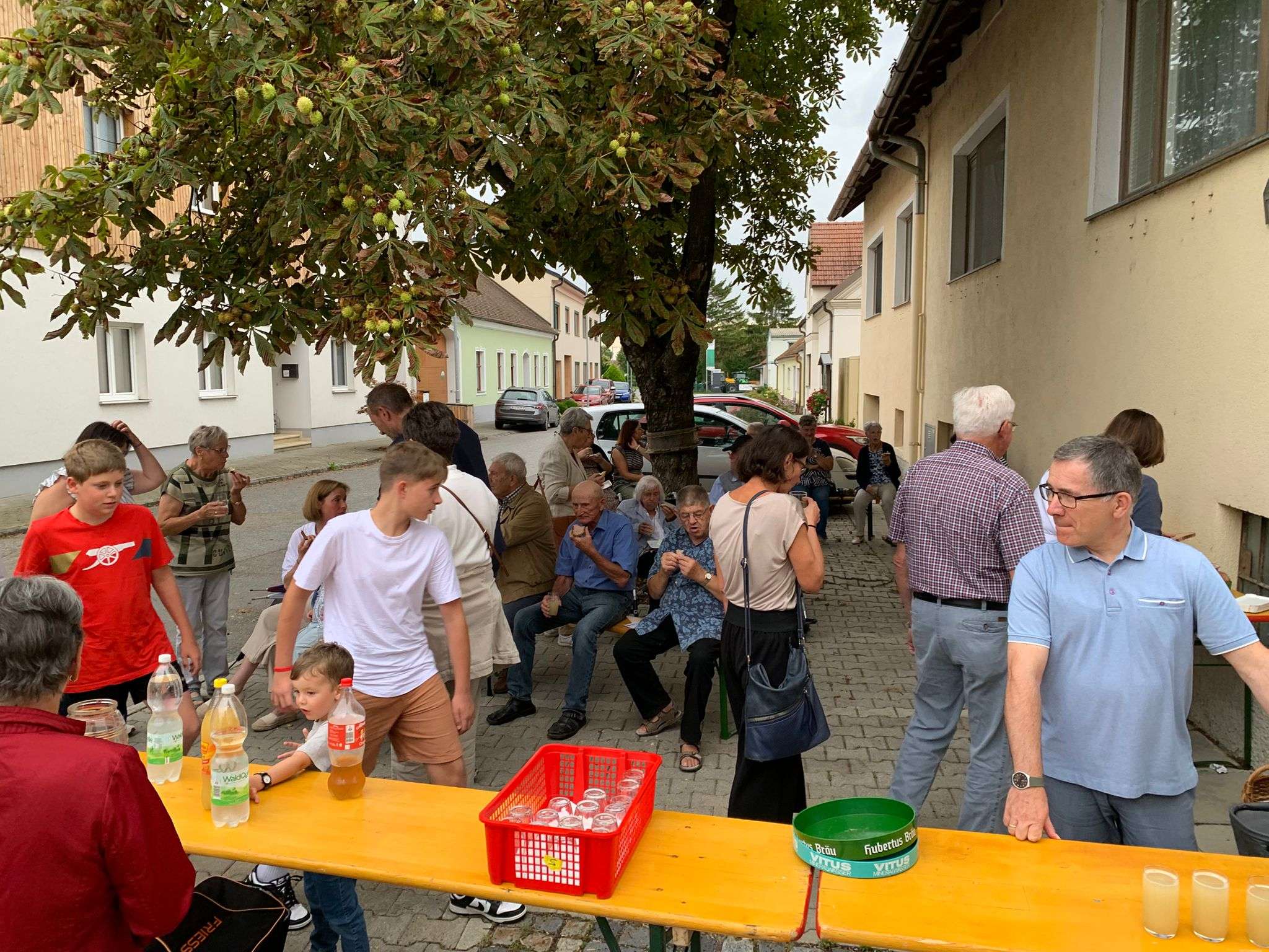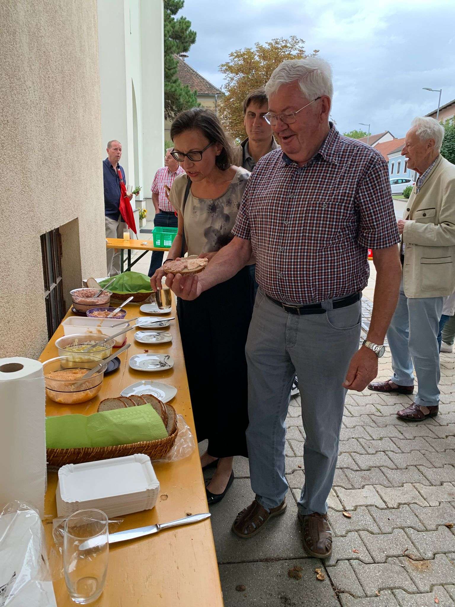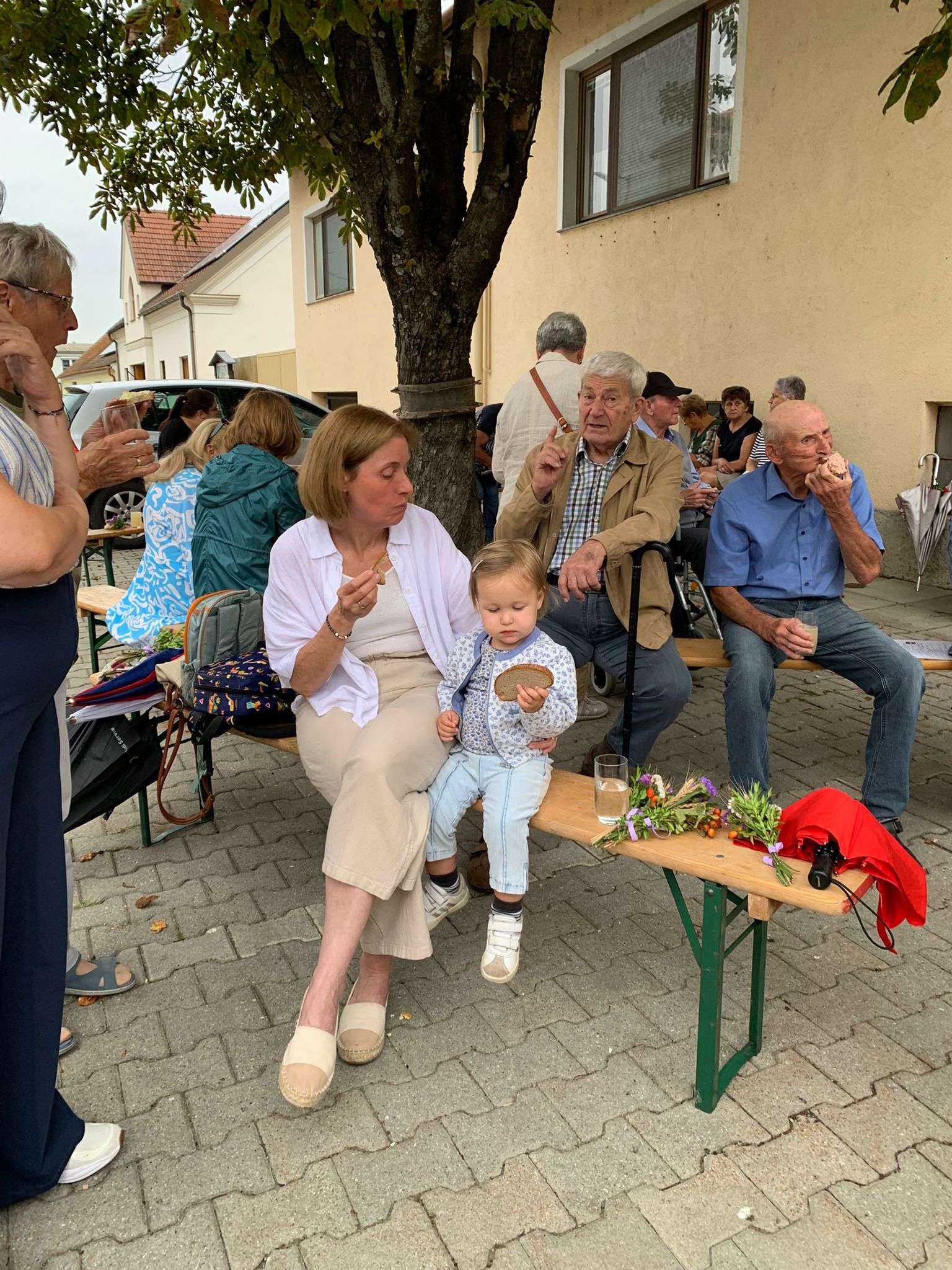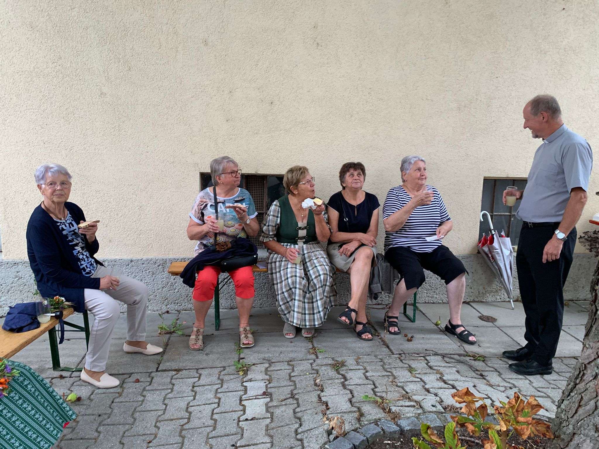 Nach der Messe ging das Fest unter dem Kastanienbaum vor dem Pfarrhof weiter: Bei frischem Sturm und köstlichen Aufstrichbroten genossen wir die Agape und das gemütliche Beisammensein.