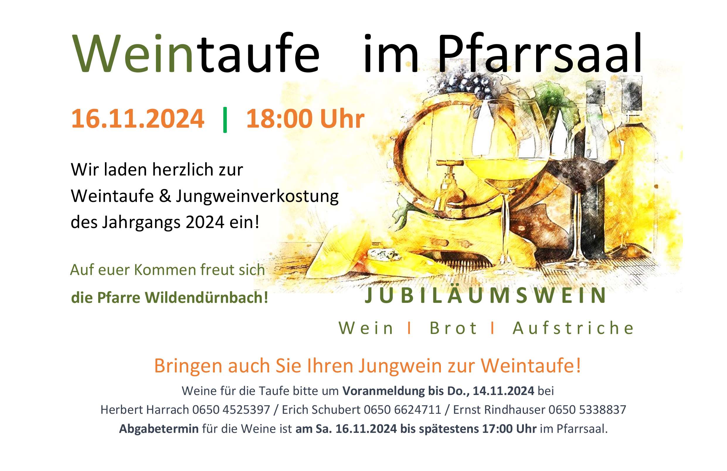 Wir laden herzlich zur Weintaufe & Jungweinverkostung des Jahrgangs 2024 ein!