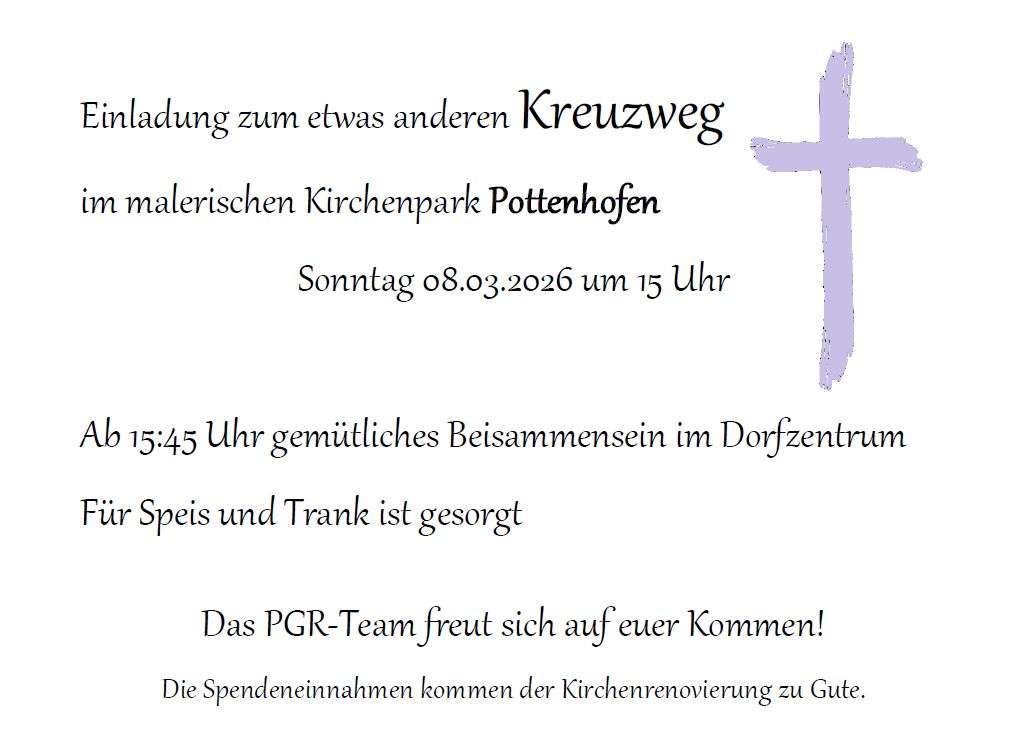 Einladung zum Kreuzweg im malerischen Kirchenpark Pottenhofen